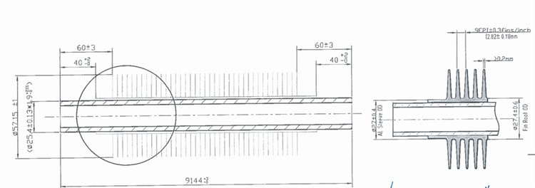 Fin Dimensions: Fin OD * Fin Thick * Fin Pitch * Unfinned Length at two sides