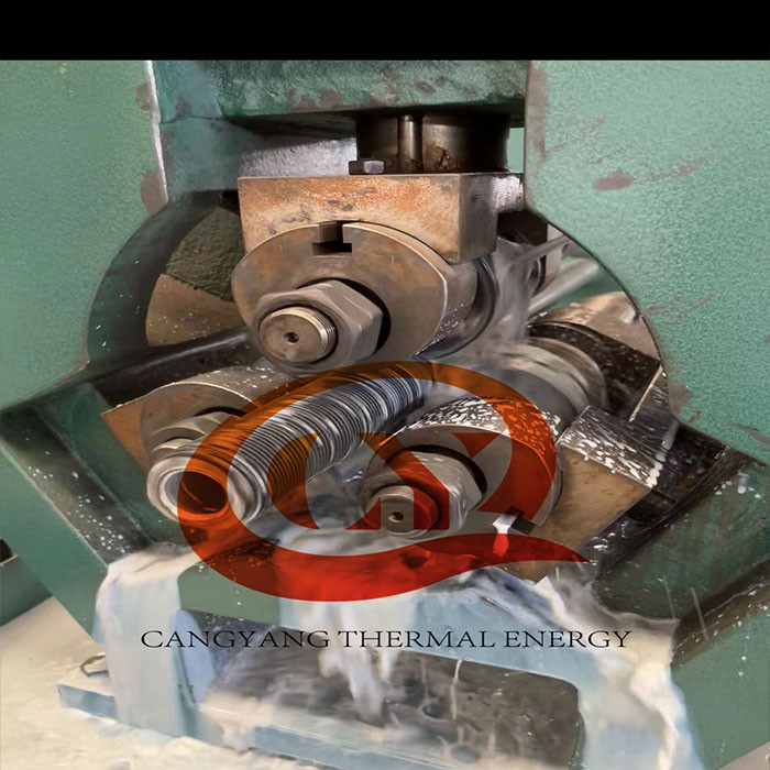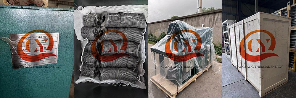 Aluminum muff tubes of different specifications are lined with copper tubes or steel tubes or carbon steel tubes (also known as base tubes), rolled and compounded by the 3 sets of cutter in the unit, and the fins are extruded at one time to achieve the effect of increasing the heat transfer area, the formed products is named high fin tube or extruded finned tube.