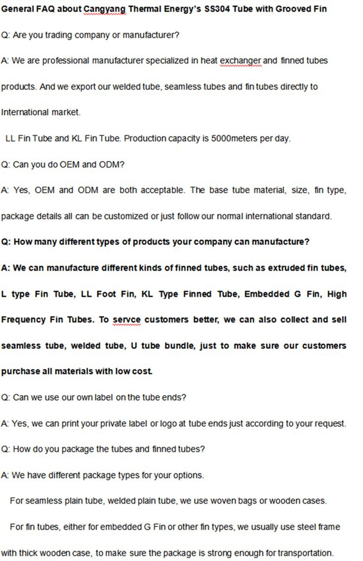 In spite of SS304 Tube with grooved fin, we do have other stainless steel 304 fin tube