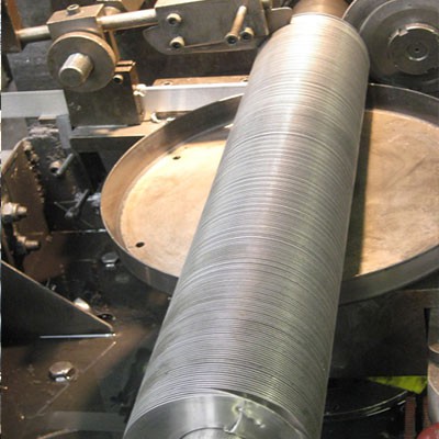 The aluminum fin strip or the copper fin strip is folded into an L shape and spirally wound tightly under the action of tension on the outer surface of the base tube. Tension in the fin strip is wrapped around the tube serves to make the fin foot forcefully on the tube, thus hold the fin firmly in place.